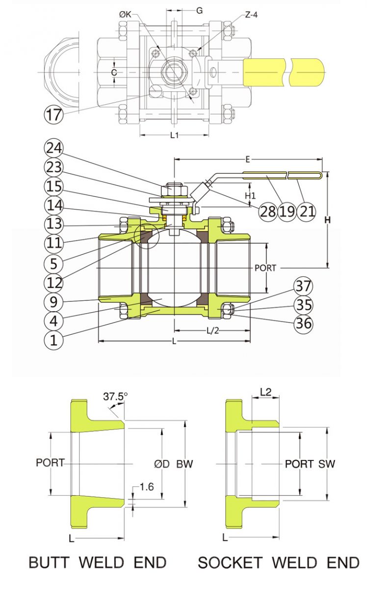 THREADED END,SOCKET WELD END,BUTT WE LD END