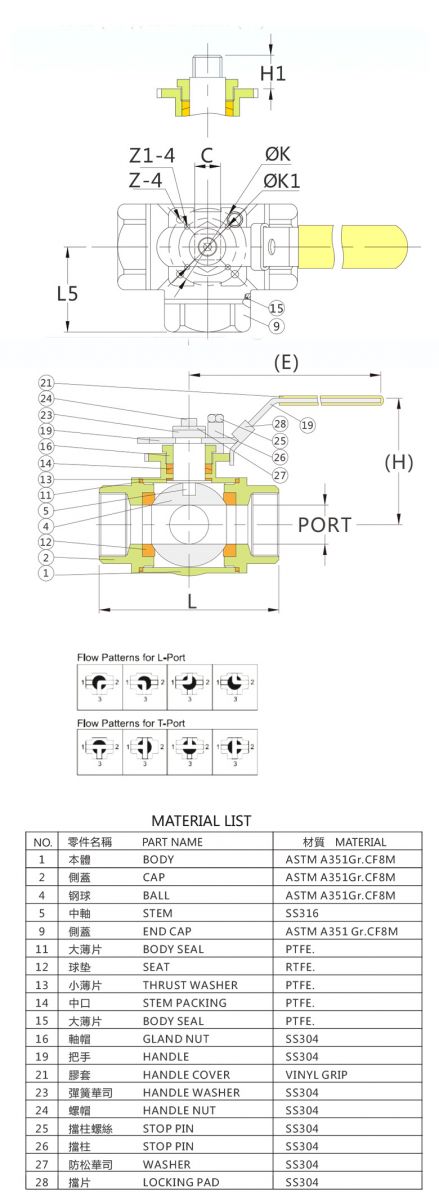 ● 有四個閥座(球垫座)THERE ARE FOUR SEATS