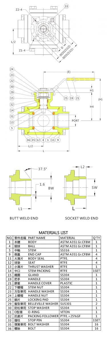 ● 有四個閥座(球墊座)THERE ARE FOUR SEATS