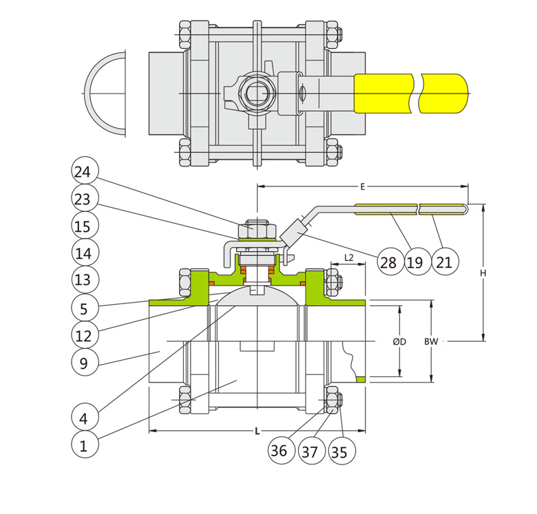 三片式食品级对焊手动球阀