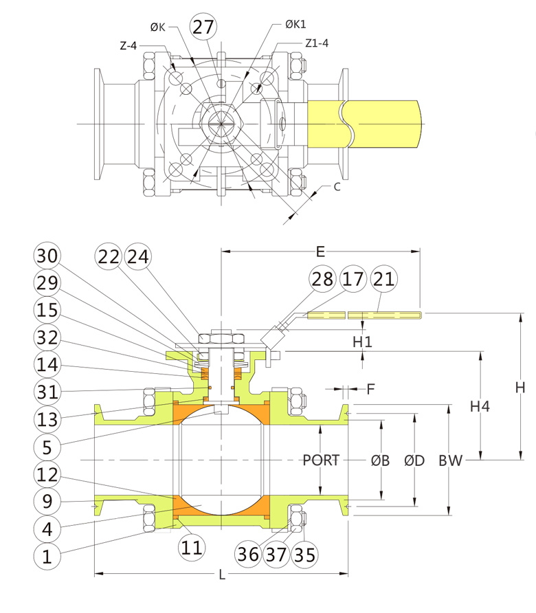 全流三片式高平台卡箍球阀